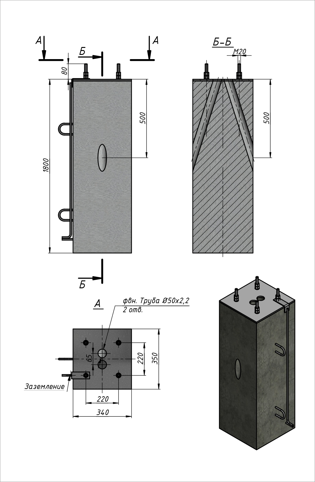 Основными характеристиками фундамента являются, сечение, высота, тип закладной детали (межцентровое расстояние между анкерами, а также размеры анкеров).