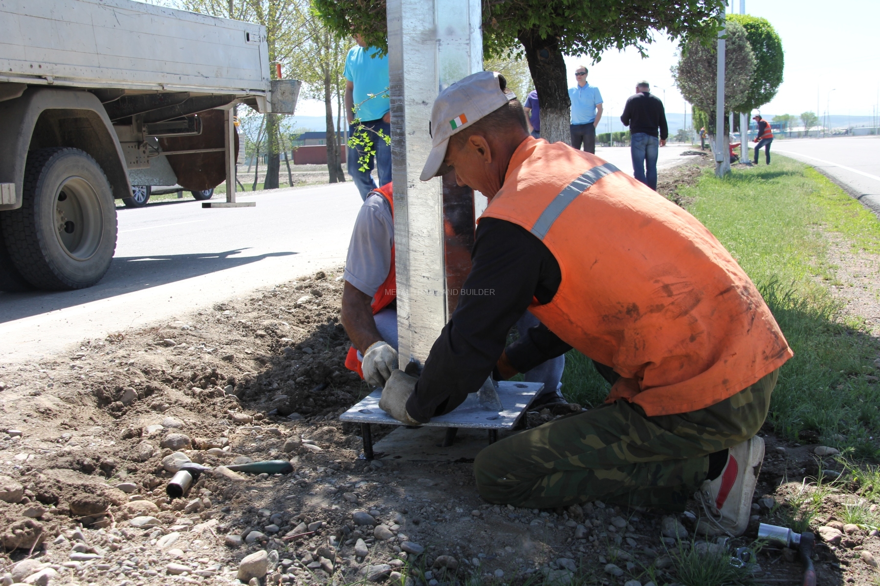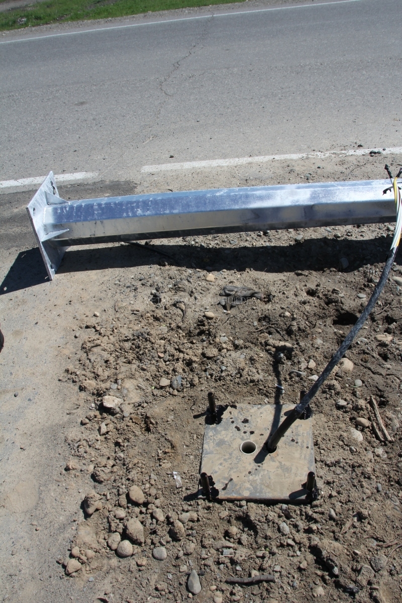 На фундаменте предусмотрена шина заземления, приваренная к опорной пластине по верху фундамента и закрепленная на одной из граней. Наличие заземления препятствует риску получения электротравм при соприкосновении с элементами конструкции опоры в ситуации, когда произошло повреждение изоляции кабеля.