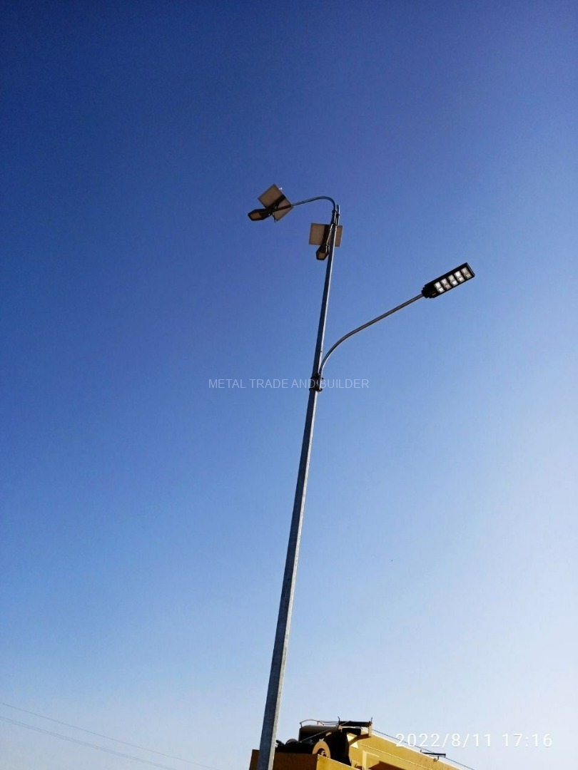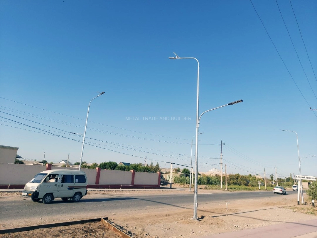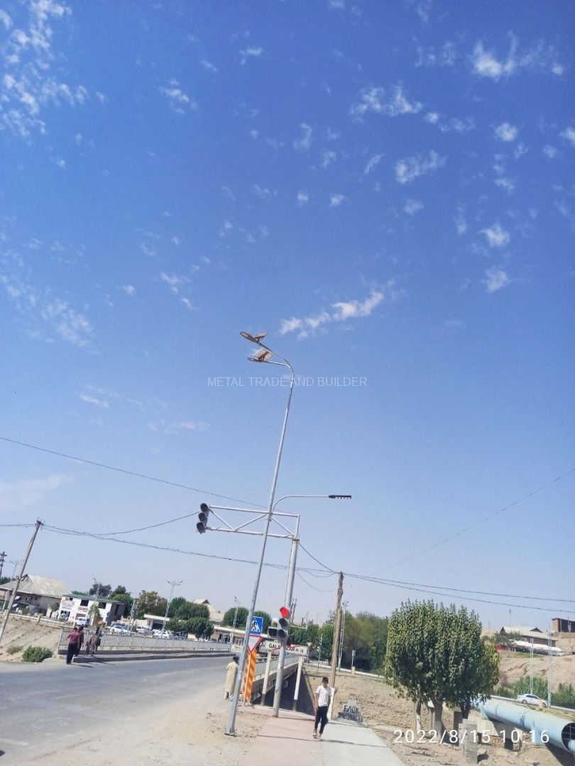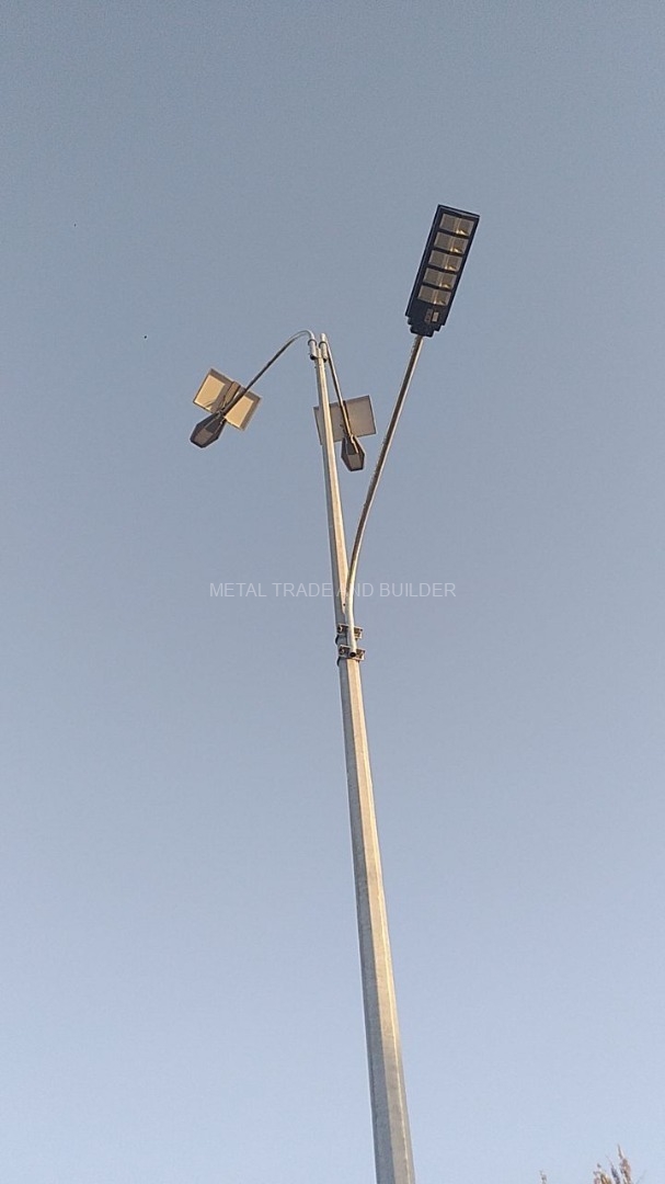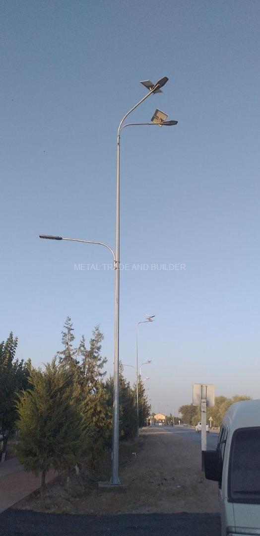Стальные граненные конические фланцевые стойки в сечении имеют восьмигранник, изготавливаются при помощи восьми последовательных гибов с одним продольным сварным швом. Благодаря технологии производства имеется возможность изготовления стоек различной конусности и как следствие произвольных размеров восьмигранного сечения верха и низа стойки в зависимости, от которых меняется несущая способность стойки. Возможность производства стоек заданной несущей способностью является неоспоримым преимуществом данного типа стоек.